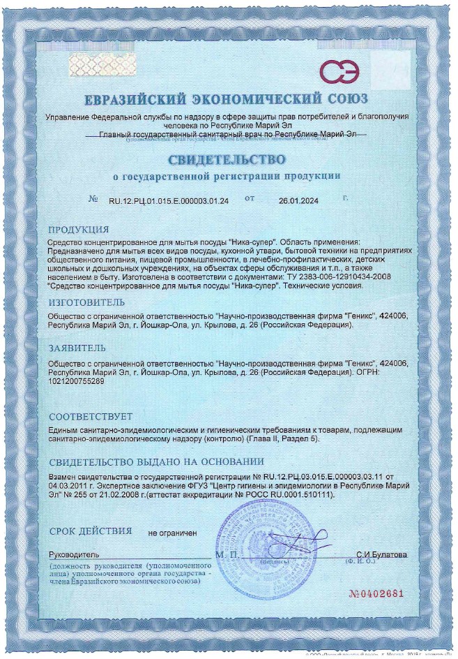Средство для мытья посуды «Ника-Супер» 5л — профессиональное средство для мытья посуды, созданное для интенсивного использования в кафе, ресторанах, столовых и других заведениях общественного питания. Быстро и эффективно удаляет любые загрязнения, включая засохшие остатки пищи и жир. Благодаря высокой концентрации активных компонентов, средство обладает низким расходом, что делает его экономичным вариантом для больших объемов работы. Подходит как для ручной мойки, так и для использования в посудомоечных машинах. Средство безопасно для кожи рук и экологически безвредно.