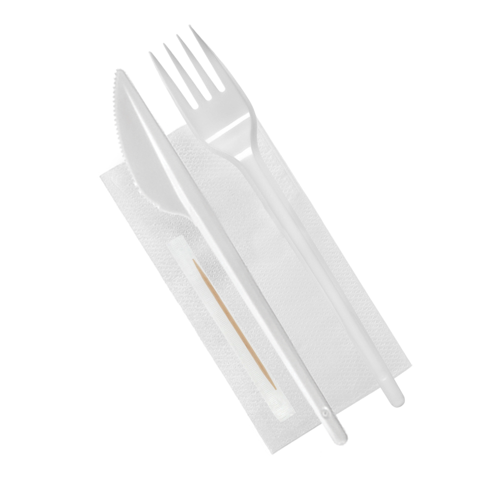 Набор №4 станет эффективным решением для вашего заведения. Комплект столовых приборов белого цвета идеально подойдет для кафе, ресторанов и прочих заведений общественного питания. Набор включает вилку, нож, зубочистку в индивидуальной упаковке и салфетку и соответствует санитарным нормам за счет герметичной упаковки. Простота дизайна и элегантная цветовая гамма делают этот комплект универсальным элементом подачи блюд любого формата. Легко сочетается с любыми видами одноразовой посуды.