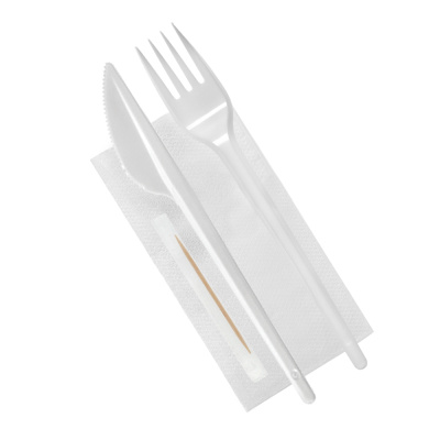 Набор №4 (вилка+нож+зубочистка+салфетка) белый ПС