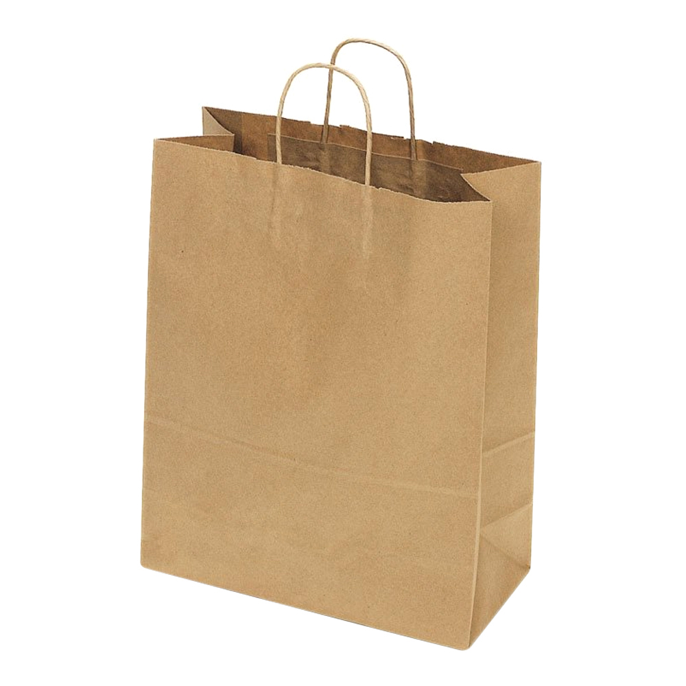 Пакет бумажный 240x140x280 крафт 70 г/м2 с прямоуг дном с кручеными ручками без печати (1 сорт)