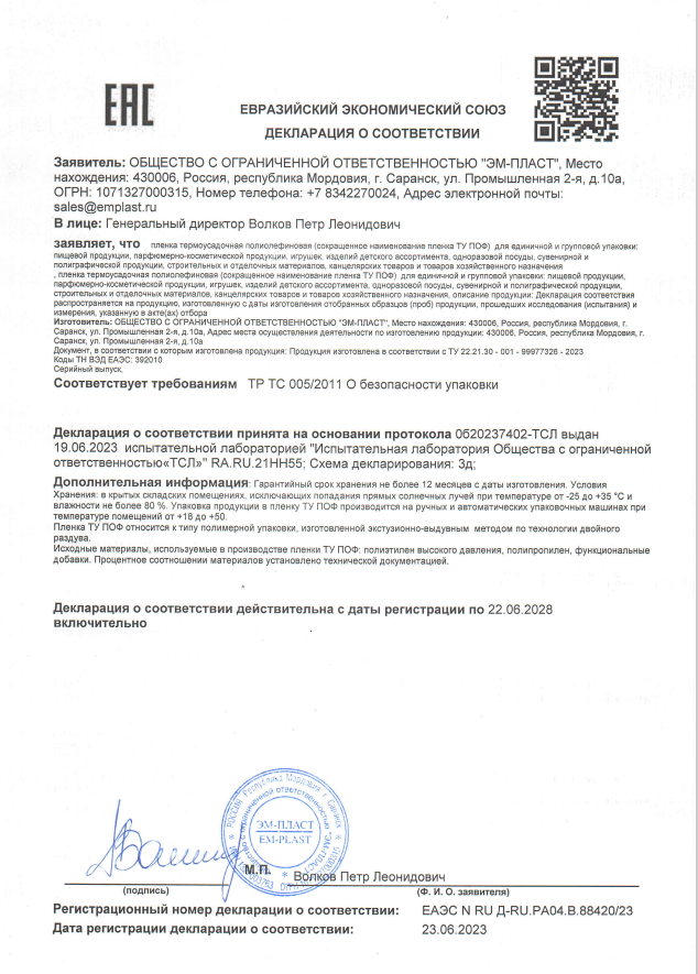Пленка т/ус ПОФ 350мм*750м 15мкм – это современный упаковочный материал, предназначенный для использования в сфере общественного питания. Произведенная из полиолефиновой пленки, она отличается высокой гибкостью, прочностью и стойкостью к внешним воздействиям. Ширина рулона в 350 мм делает ее подходящей для упаковки разнообразных блюд, закусок и хлебобулочных изделий. Длина рулона составляет внушительные 750 метров, что обеспечивает длительное использование и значительную экономию средств. Толщина пленки в 15 микрон обеспечивает оптимальную защиту продукта от влаги и загрязнений, одновременно способствуя увеличению срока годности продукции. Эта пленка станет надежным помощником в поддержании высокого качества продуктов и создании привлекательного внешнего вида упаковки.
