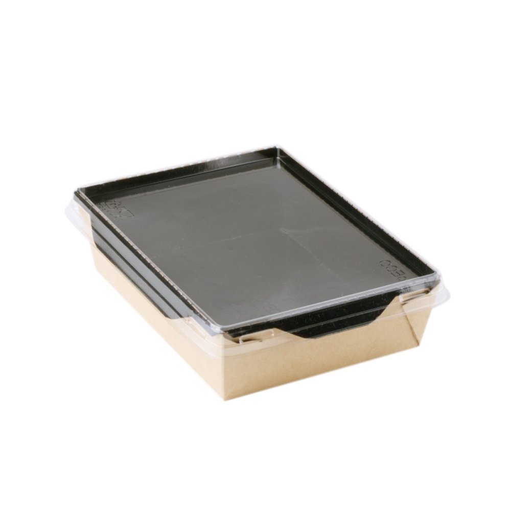 Контейнер бумажный 800 мл 207х127х55 прямоуг крафт/черный с пластиковой крышкой